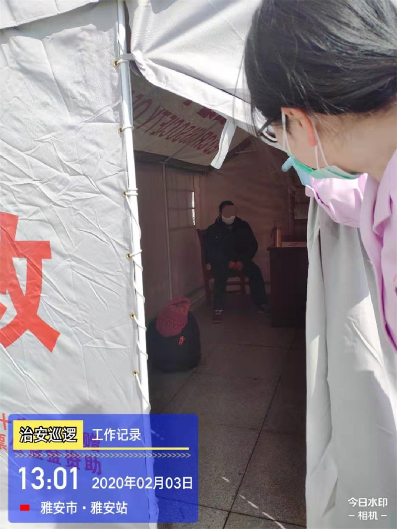 2 月3日中午1点左右,雅安火车站内响起一阵急促的警报声。几分钟后,雅安火车站工作人员、雨城区姚桥卫生院医护人员将一名张姓妇女从雅安火车站入站口带出,送至运通公司在雅安火车站出站口设置的隔离区。