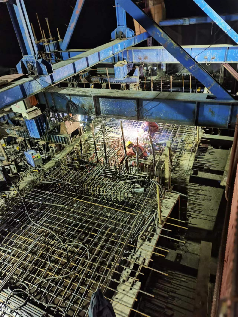 4月7日晚,由交建路桥负责实施的雨名快速通道2标段跨线桥正如火如荼建设中。该项目上跨成雅高速、国道318线,为小半径曲线桥,结构复杂,施工难度大。 为确保项目高效推进,交建路桥抢抓黄金工期,共投入14台设备、70余人,加班加点、挑灯夜战绑扎K3+415成雅高速跨线大桥边跨现浇段钢筋。工地现场灯火通明,机械轰鸣,施工人员挥汗如雨,一派繁忙景象,工程建设井然有序。此次抢工,为后续项目施工积蓄了开展动能,同时也保障了项目总体目标的实现。