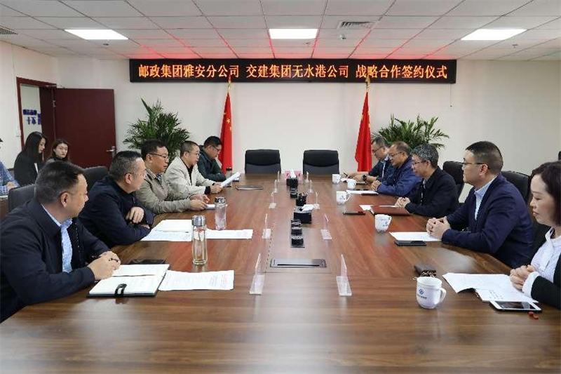 5月19日,中国邮政集团股份有限公司雅安市分公司与币游集团无水港物流有限责任公司在交建集团举行战略合作签约仪式,双方就加强合作、促进雅安大物流体系构建进行深入研讨。交建集团党委书记、董事长漆家华,党委副书记、总经理罗伦全,邮政集团雅安分公司总经理王根孝、副总经理吴岱峰及双方公司相关负责人见证签约。