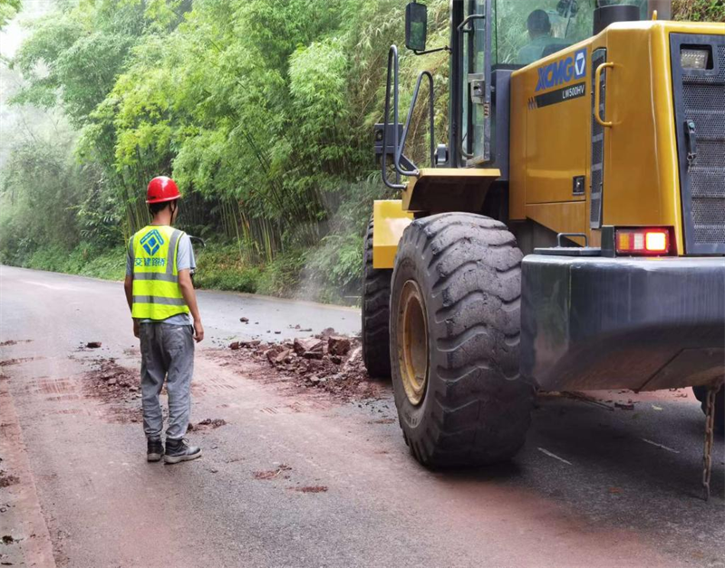 灾情发生后,交建路桥公司省道104改建工程项目部应望鱼镇抗洪抢险应急指挥部要求,立即启动抗洪抢险应急预案,由20余名现场施工人员组成的抢险队伍兵分三路,投入挖机2台、装载机2台、水车1台、皮卡车2辆,圆满完成雅赵路多处塌方和曹万村、嫣溪沟村等村道泥石流及边坡坍塌土石方清理工作,及时恢复道路交通,受到当地党委政府和村民一致好评。