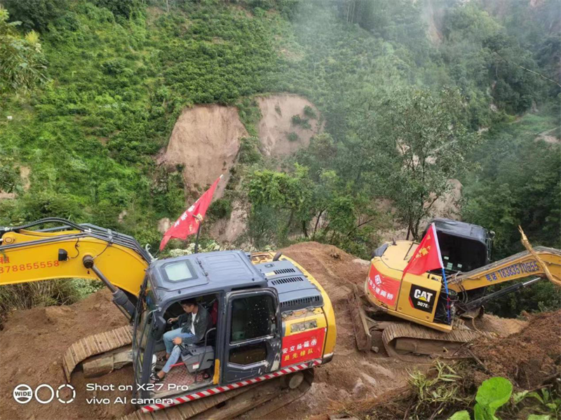 抢险队伍,马上出发!集团领导班子立即召开碰头会,分析研判形势,安排部署工作,密切关注震区态势,创建抗震救灾领导小组,副总经理钟焱宇率现场指挥组赶赴石棉靠前指挥抢险救灾。正在石棉G108线施工的康藏路桥公司项目部组成10人抢险救援小分队,携带挖掘机4台、拖车4台、装载机3台、交通运输车2辆、无人机1台,第一时间到就地抢险工作,震后7小时,完成国道G108线马富至菩萨岗约40公里路段、6处塌方点1600余方土石方清理,尔后转战石棉县新民乡进行通乡道路抢通作业。