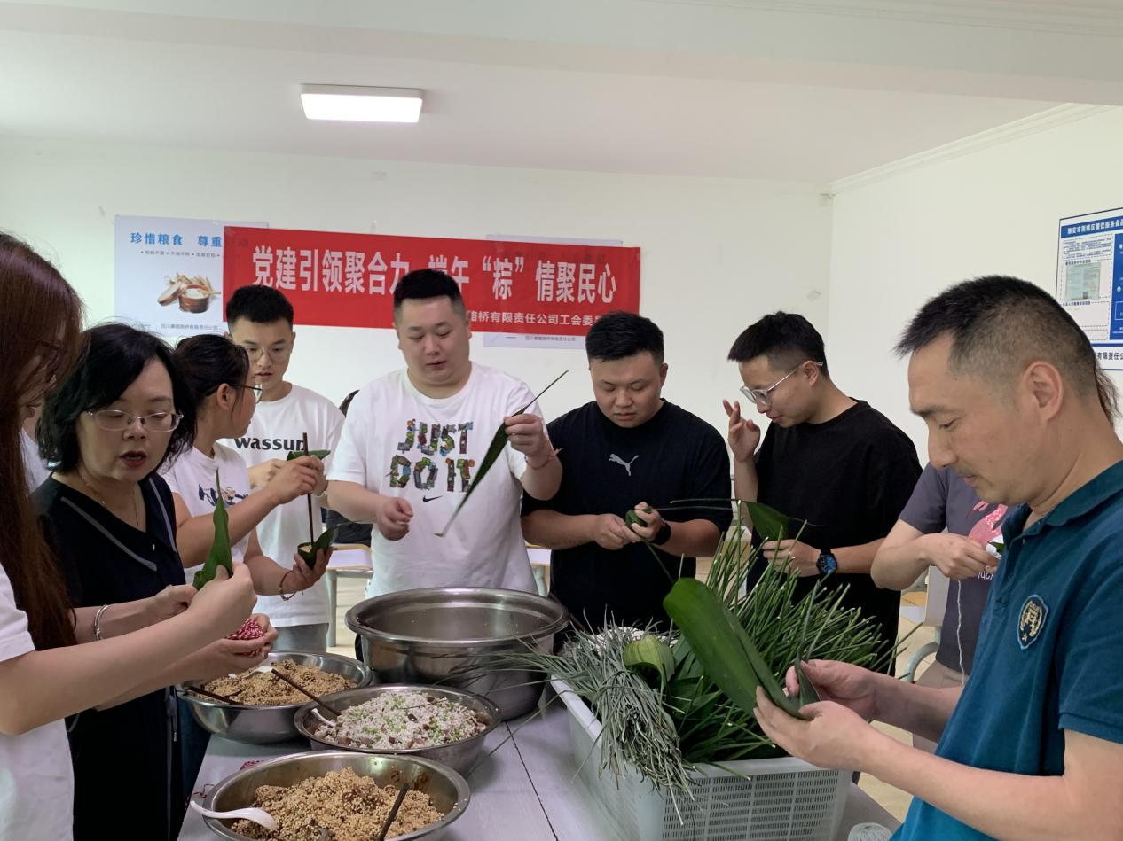 在端午节即将来临之际,为大力弘扬中华民族精神,传承民族优良传统,路桥公司团支部、工会组织各分公司、项目部分片区召开“党建引领聚合力 端午“粽”情聚民心”包粽子、做香包活动,持续推进党建与生产经营深度融合,努力把生产经营工作的重难点作为党建工作的着力点、突破点,切实做到哪里有急难险重的任务,哪里就有党组织攻坚克难,就有党员冲锋在前,在冲刺完成年度目标任务的关键时期,充分展示了路桥公司持续干事的精神风貌,实现了“凝聚路桥员工之心,锐意进取全面冲刺”的目的。