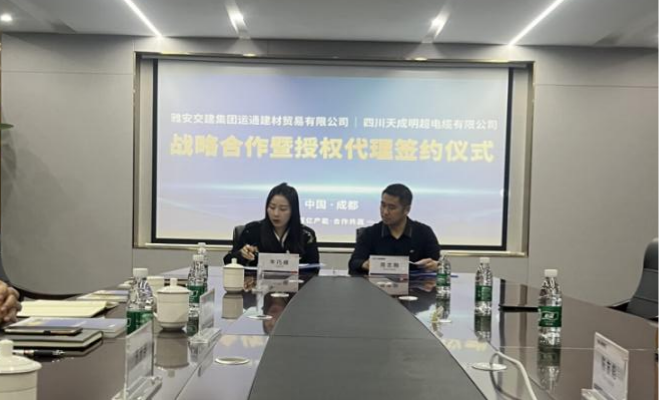 币游建材公司按照集团对运输贸易业务高质量开展要求,持续召开建材市场新兴产业调研和开拓。经不懈努力,近期,与四川天成明超电缆有限公司(以下简称:天成公司)成功完成战略合作暨授权代理签约。