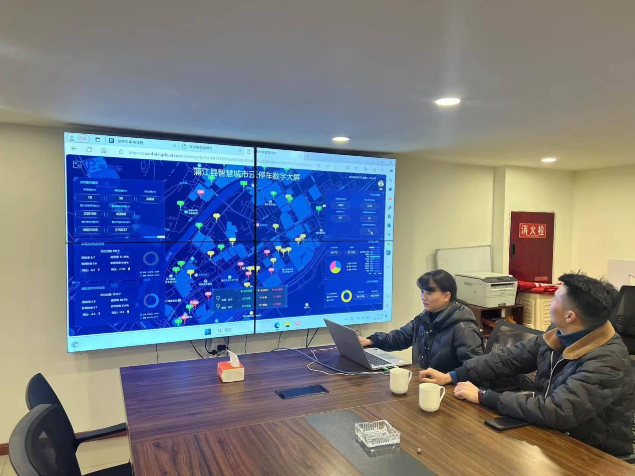 随后,实地来到蒲江道路停车泊位点位,听取了享停公司关于道路停车泊位、停车管理系统等基本情况的介绍,对停车泊位点智能化建设、布局配套和停车收费等情况有了进一步分析。