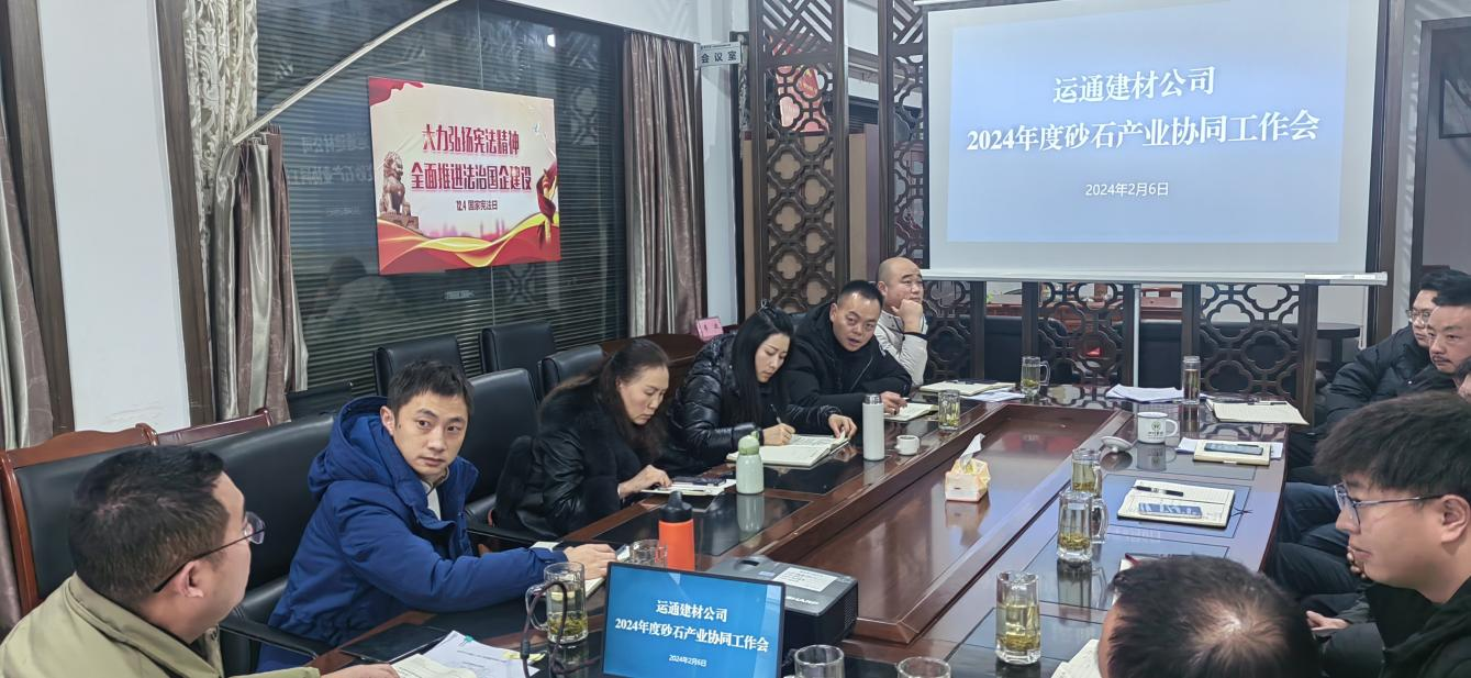 按照集团公司2024年工作部署,建材公司董事长李波组织召开2024年度砂石产业协同工作会,集团目标管理部负责人以及建材、丹石、云石、兴宝公司班子成员、销售部门负责人参加会议。会议就2024年度重点工作任务、市场拓展方向、产业协同等方面进行深入研讨。
