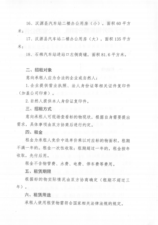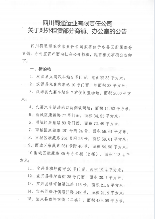 四川蜀通运业有限责任公司关于对外租赁部分门面、办公室资产的公告附件
