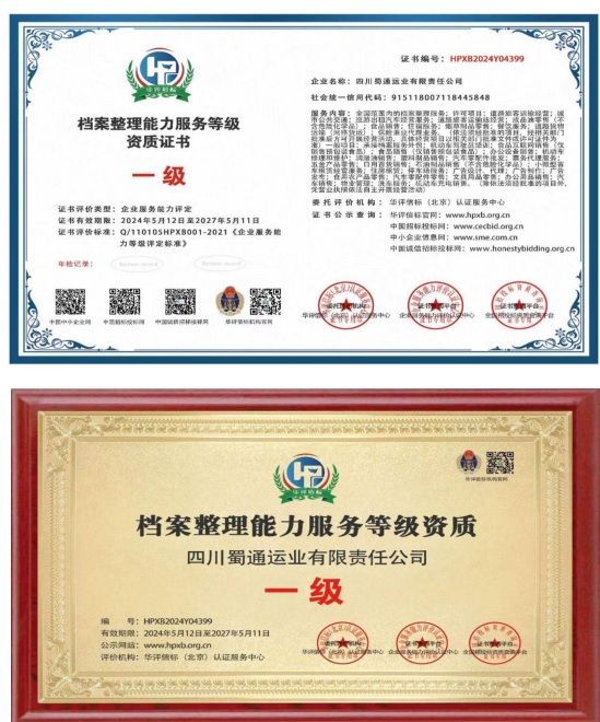 近期,币游集团四川蜀通运业有限责任公司成功取得档案整理能力服务等级一级资质证书,该证书是行业内最高级别的资质认证,旨在证明公司在档案整理、管理、保护等方面具备卓越的能力和丰富的经验。 该证书的取得,不仅提升了公司的品牌形象和市场竞争力,也为公司未来的开展奠定了坚实的基础,是蜀通公司开展历程中的一项重要里程碑。蜀通公司将以此为契机,不断提升自身实力和服务水平,为客户给予更加专业、优质的档案整理服务。