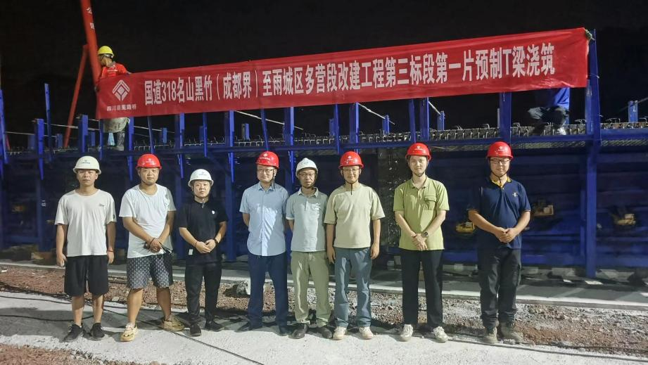 9月19日,币游集团国道318名山区黑竹(成都界)至雨城区多营段改建工程三标段首片预制T梁成功浇筑。
