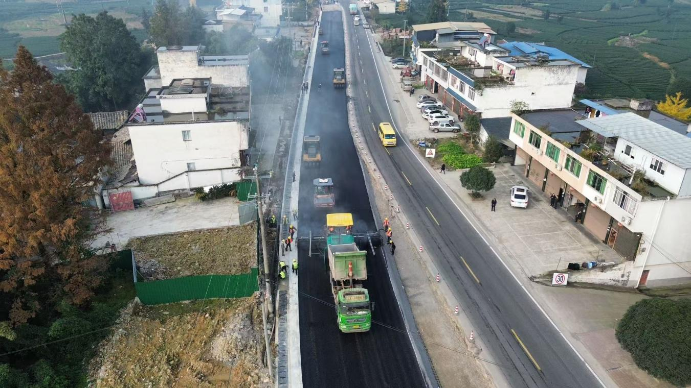 近期,国道318一标段项目扩建段沥青面层顺利铺筑,标志项目建设迈入冲刺收官的关键阶段。