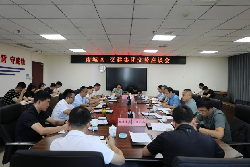 8月15日,雨城区区委常委、常务副区长白涛,区政府党组成员、副区长彭晓东携区发改局、自规局、财政局等多部门负责人主动赴交建集团召开座谈研讨,以“上门服务”模式为企业开展排忧解难。交建集团党委副书记、总经理赵飞勇主持会议,双方围绕交旅融合、综合能源站建设、集中采购优化及建材合作等核心议题深入磋商,就前期合作项目推进情况充分交换意见,并就下一步深化合作达成系列共识。