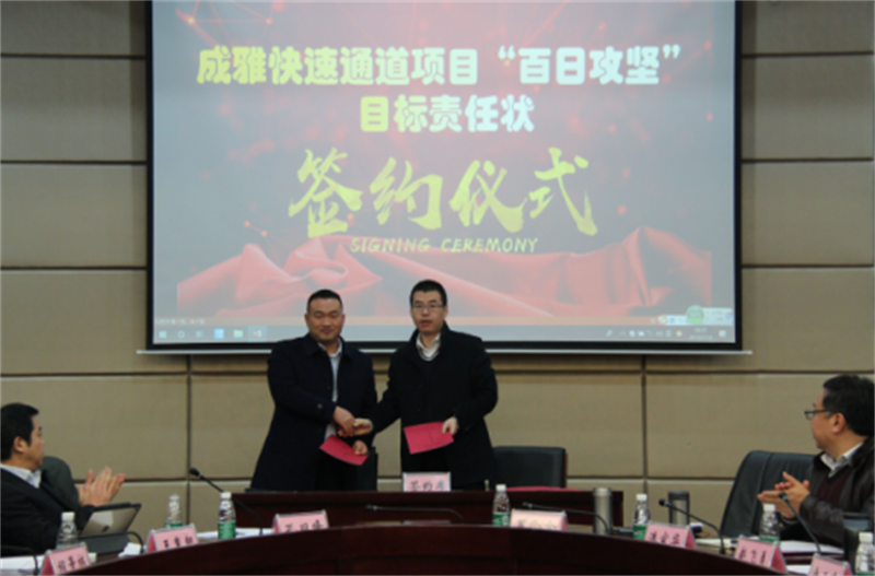 会上,项目公司介绍了项目建设情况;市交通运输局安排布置了“百日攻坚”活动;中建三局、六局、参建单位分别发言,建设单位分别与各标段签订“百日攻坚”责任状,会议在严肃又紧张的氛围下进行。