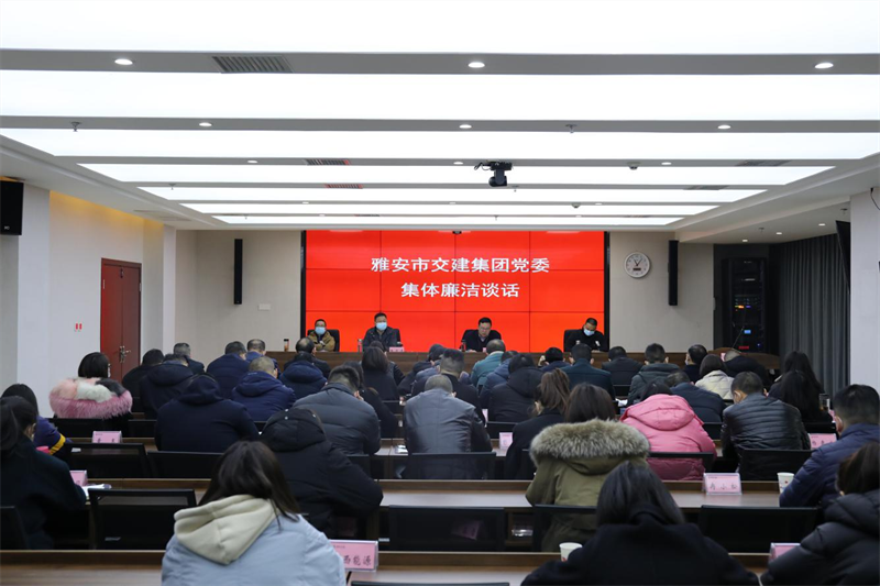 1月25日,雅安市交建集团党委召开集体廉洁谈话会,党委书记、董事长漆家华带头落实党风廉政建设主体责任,对各级党组织书记和子公司主要负责人、机关各部门负责人进行集体廉洁谈话。