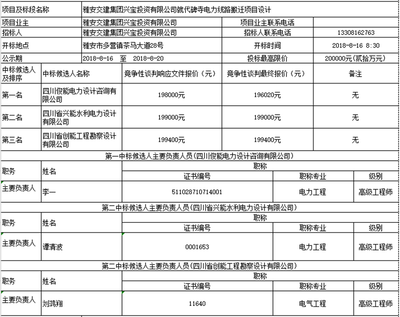币游集团兴宝投资有限公司就代碑寺电力线路搬迁项目设计竞争性谈判中标候选人公示
