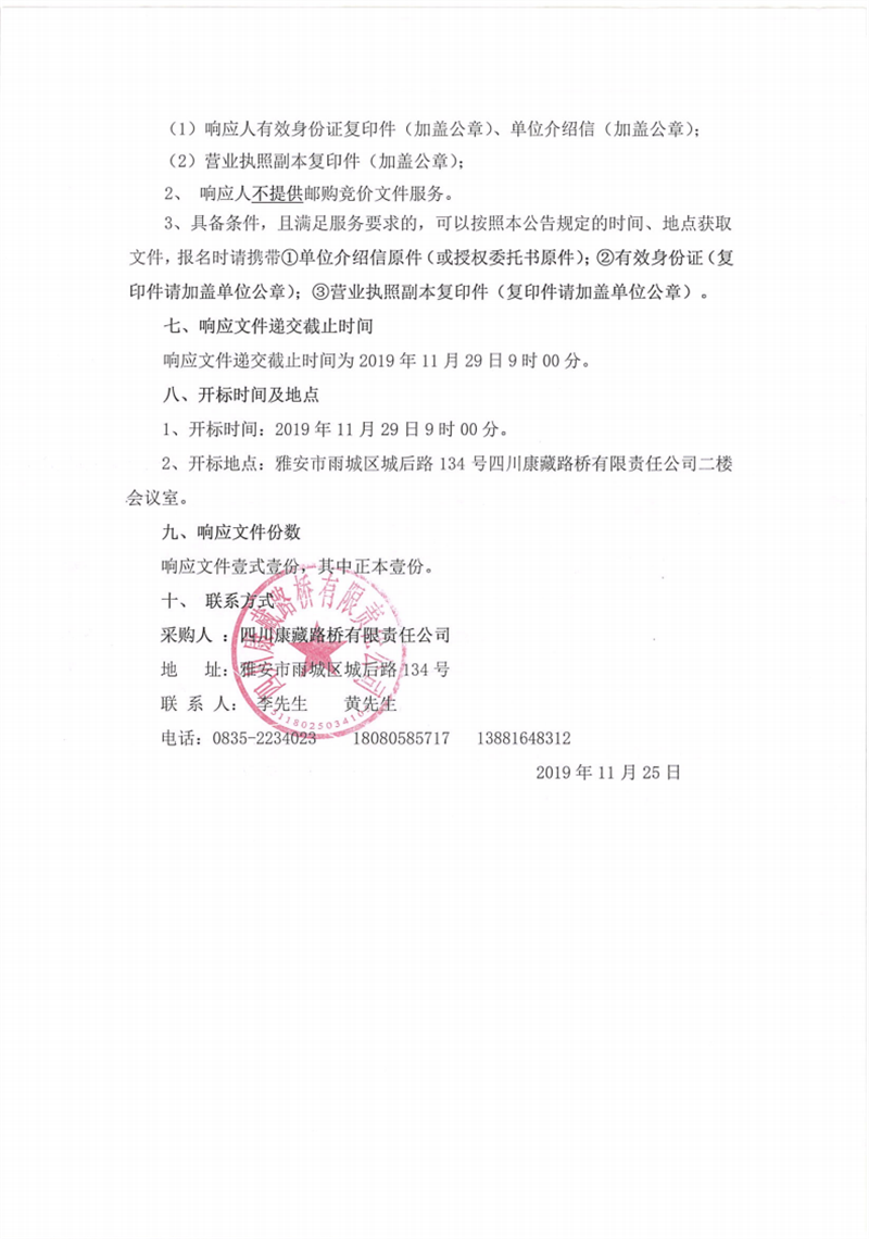 四川康藏路桥有限责任公司芦山县龙门、大川等8个乡镇基础设施恢复提升工程项目施工劳务竞价公告