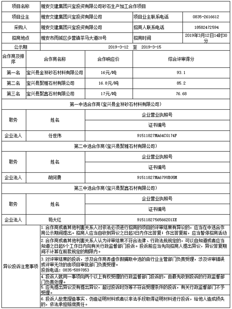 雅安市交通建设(集团)有限责任公司大型户外广告企业入库比选结果