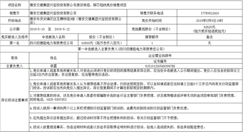 币游集团兴宝投资有限公司废旧铁塔、铜芯铝线竞价销售项目公示