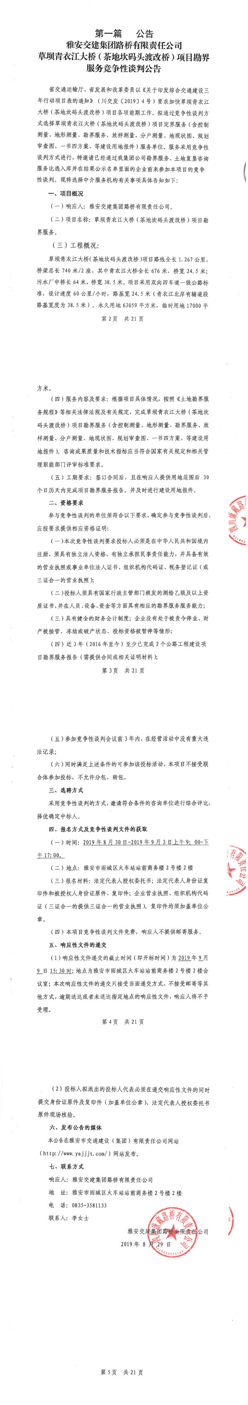 币游集团路桥有限责任公司草坝青衣江大桥(茶地坎码头渡改桥)项目勘界服务竞争性谈判公告