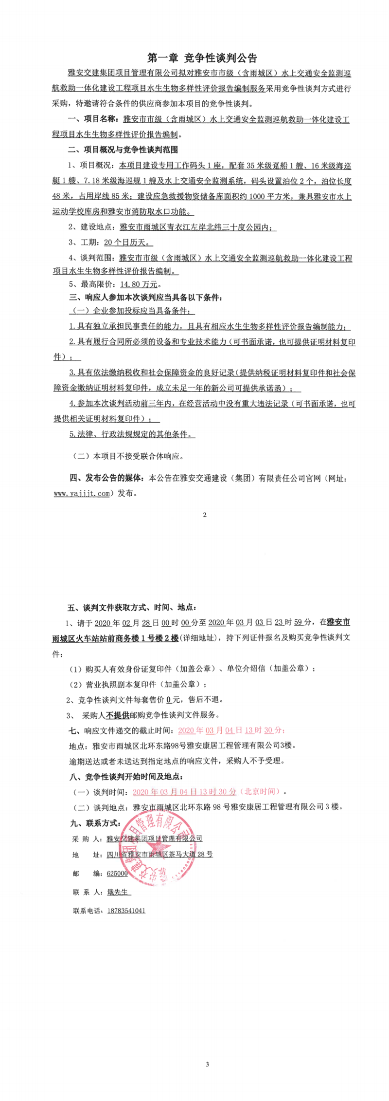 币游集团项目管理有限公司雅安市市级(含雨城区)水上交通安全监测巡航救助一体化建设工程项目水生生物多样性评价报告编制竞争性谈判公告