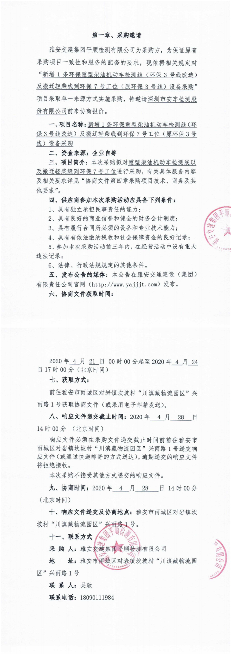 币游集团平顺检测有限公司新增1条环保重型柴油机动车检测线(环保3号线改造)及搬迁轻柴线到环保7号工位(原环保3号线)设备采购单一来源协商公告