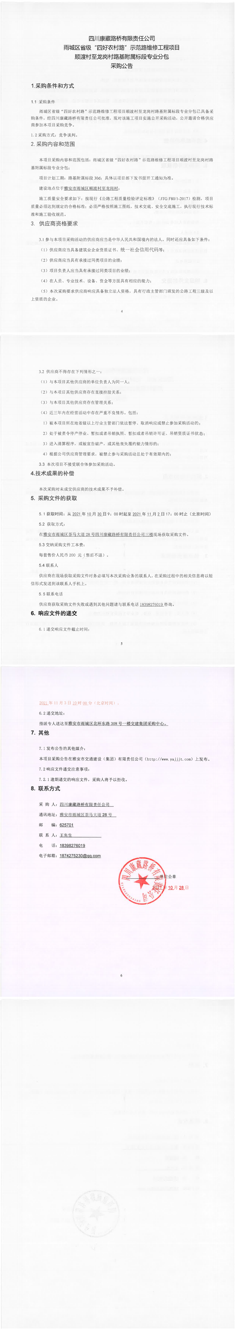 四川康藏路桥有限责任公司雨城区省级“四好农村路”示范路维修工程项目顺渡村至龙岗村路基附属标段专业分包采购公告