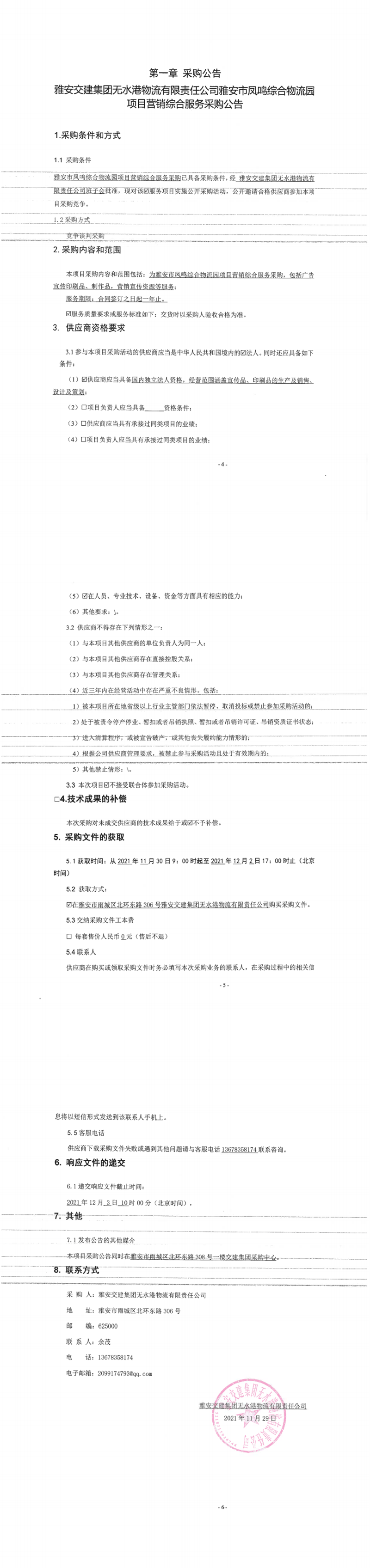币游集团无水港物流有限责任公司雅安市凤鸣综合物流园项目营销综合服务采购公告