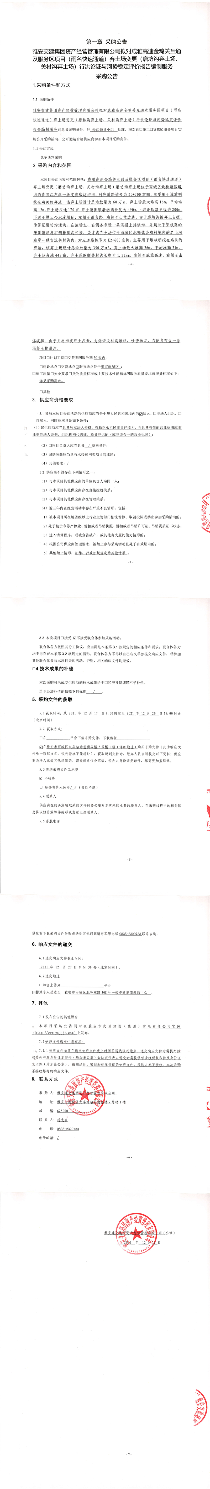 币游集团资产经营管理有限公司拟对成雅高速金鸡关互通及服务区项目(雨名快速通道)弃土场变更(磨坊沟弃土场、关材沟弃土场)行洪论证与河势稳定评价报告编制服务采购公告