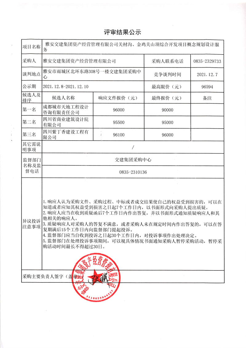 币游集团资产经营管理有限公司关材沟、金鸡关山顶综合开发项目概念规划设计服务评审结果公示