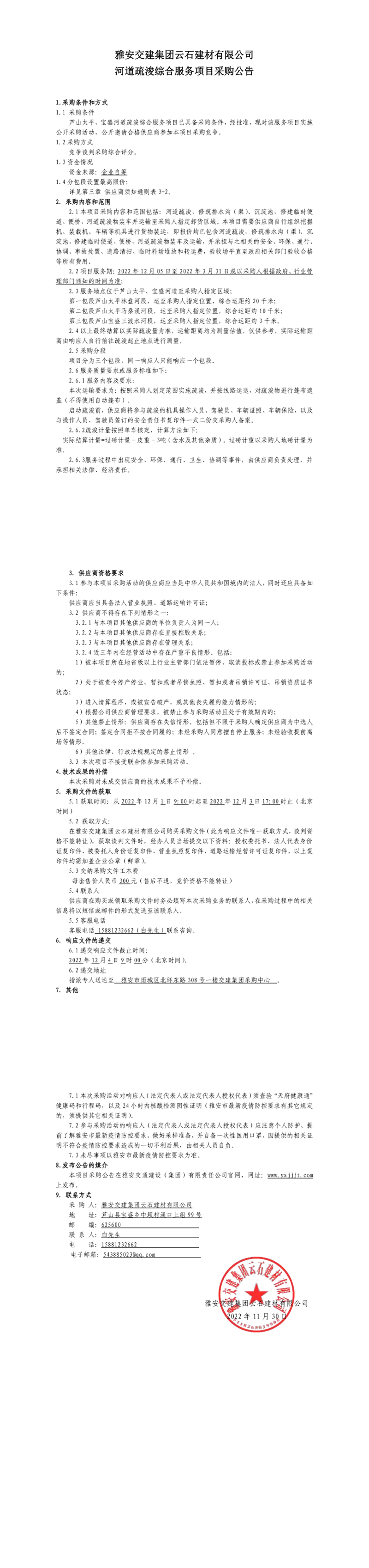 币游集团云石建材有限公司河道疏浚综合服务项目采购公告