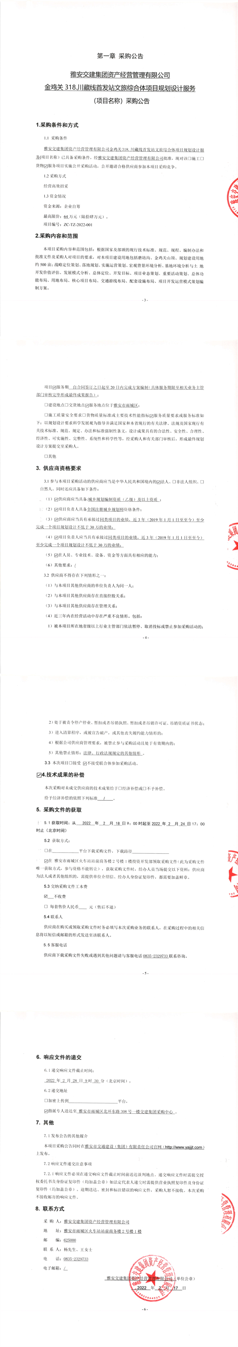 币游集团资产经营管理有限公司金鸡关318.川藏线首发站文旅综合体项目规划设计服务采购公告