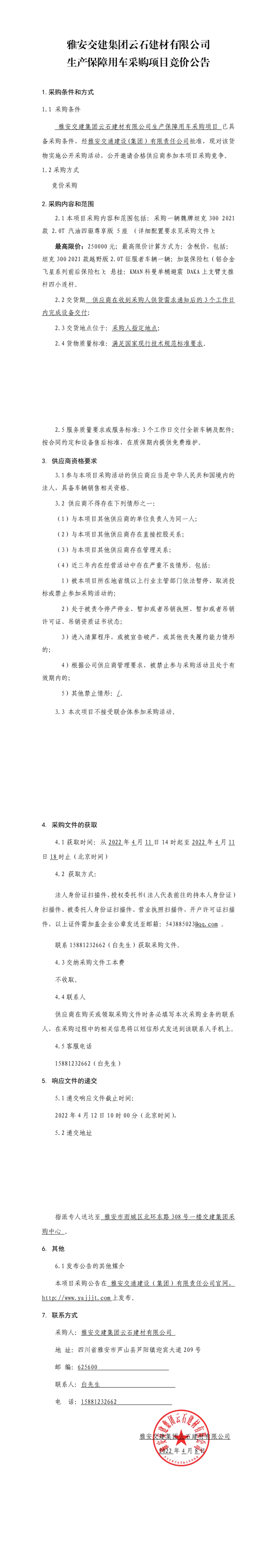 币游集团云石建材有限公司生产保障用车采购项目竞价公告