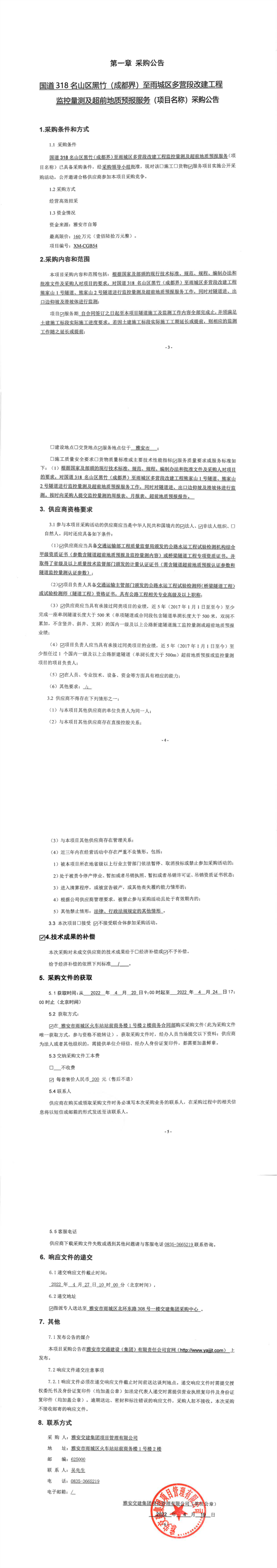 币游集团项目管理有限公司国道318名山区黑竹(成都界)至雨城区多营段改建工程监控量测及超前地质预报服务采购公告