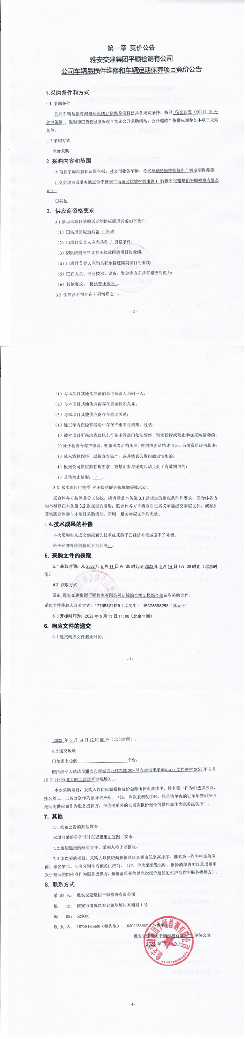 币游集团平顺检测有限公司公司车辆易损件维修和车辆定期保养项目竞价公告