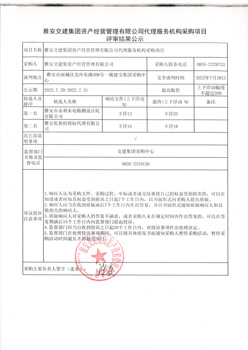 币游集团资产经营管理有限公司代理服务组织采购项目评审结果公示
