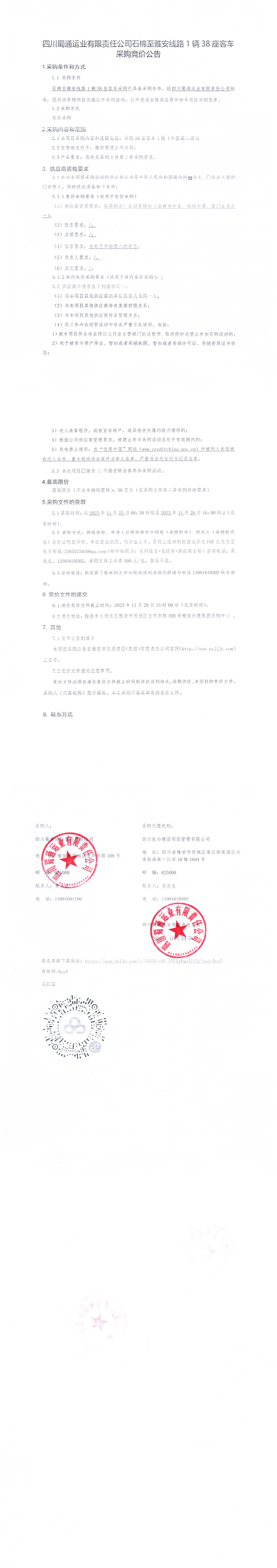 四川蜀通运业有限责任公司石棉县至雅安线路1辆38座客车采购竞价公告