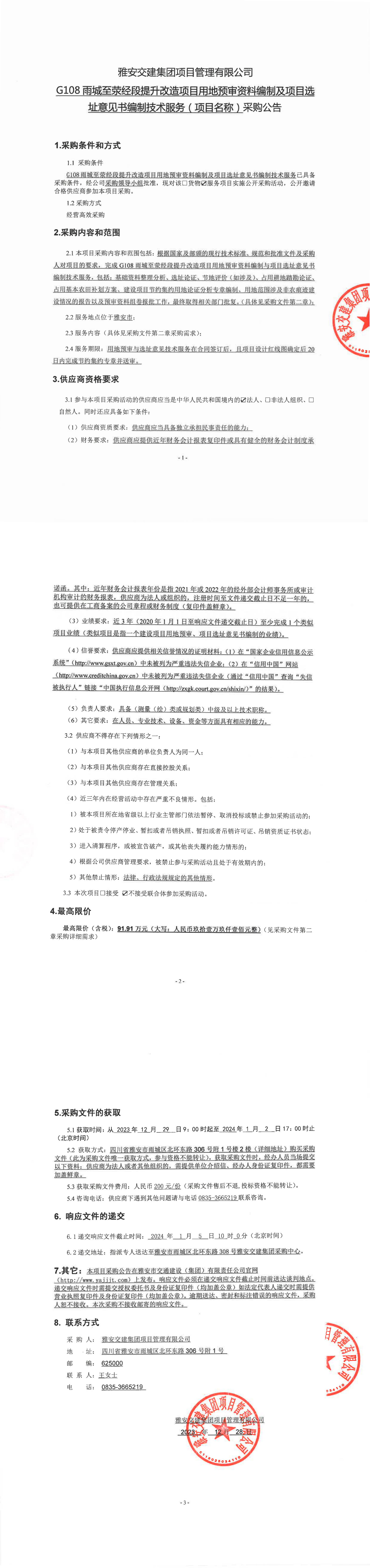 币游集团项目管理有限公司G108雨城至荥经段提升改造项目用地预审资料编制及项目选址意见书编制技术服务(项目名称)采购公告