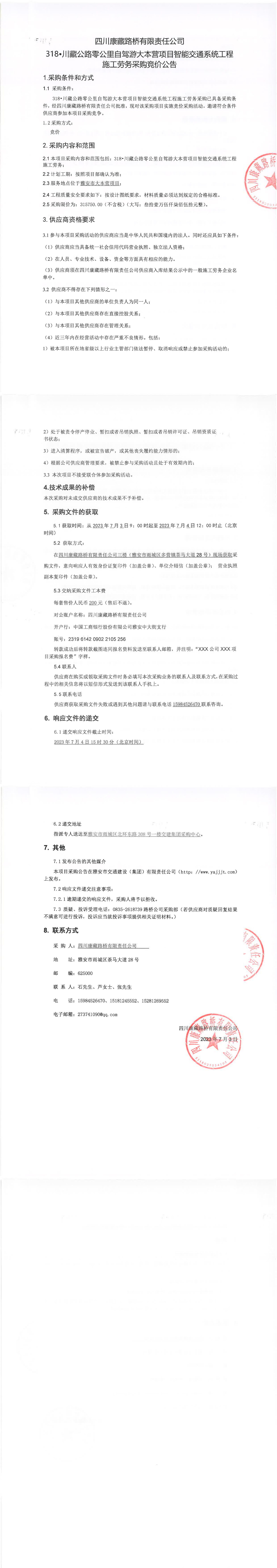 四川康藏路桥有限责任公司318·川藏公路零公里自驾游大本营项目智能交通系统工程施工劳务采购公告
