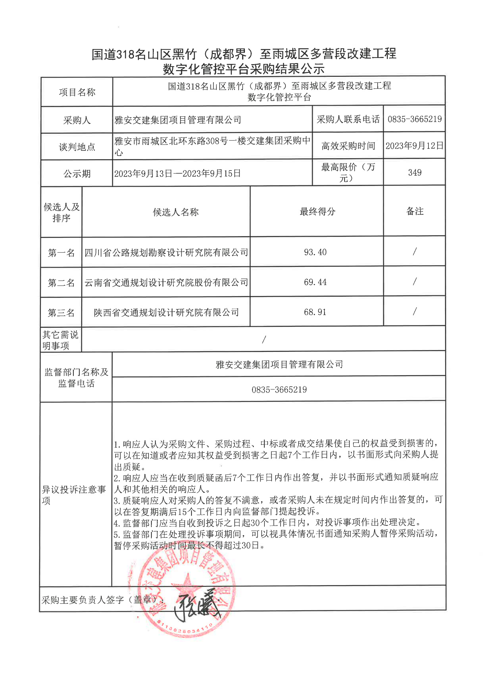 币游集团项目管理有限公司国道318名山区黑竹(成都界)至雨城区多营段改建工程数字化管控平台采购结果公示