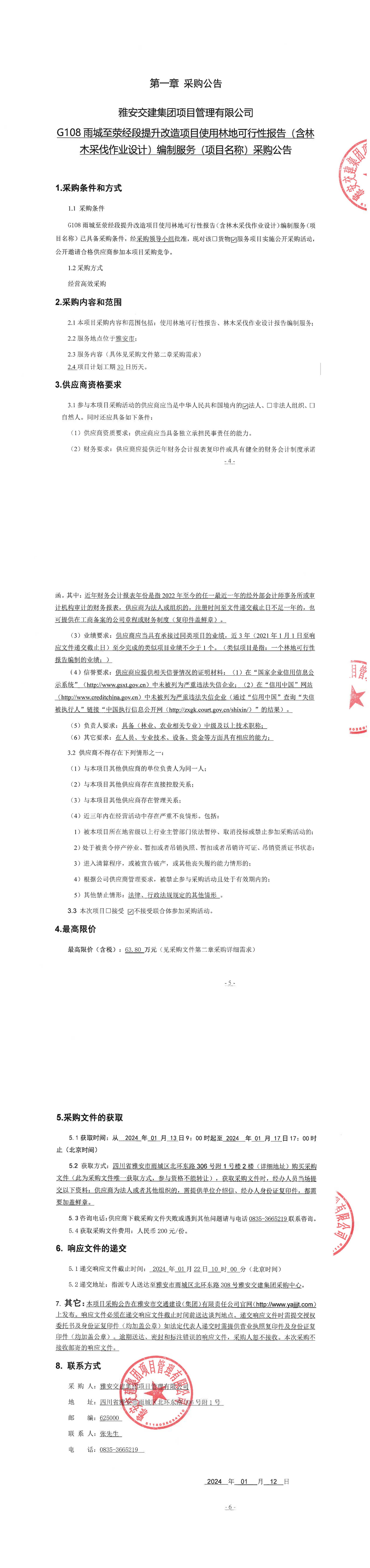 币游集团项目管理有限公司G108雨城至荥经段提升改造项目使用林地可行性报告(含林木采伐作业设计)编制服务(项目名称)采购公告