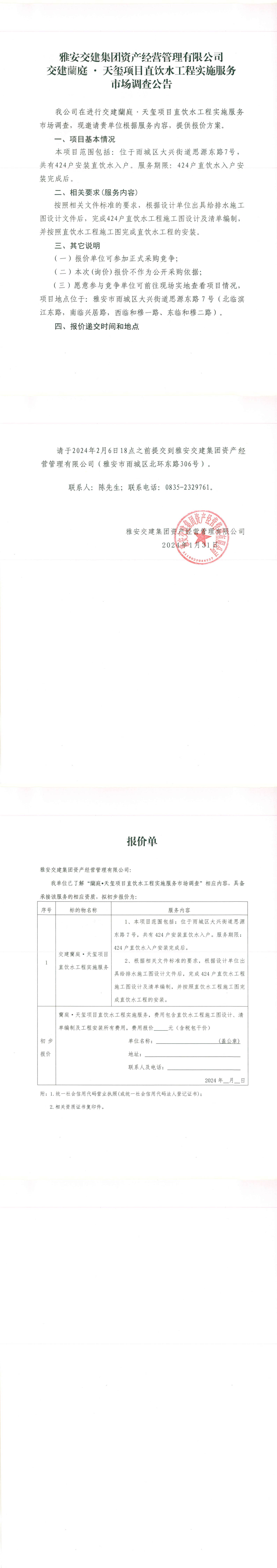 币游集团资产经营管理有限公司交建蘭庭·天玺项目直饮水工程实施服务市场调查公告