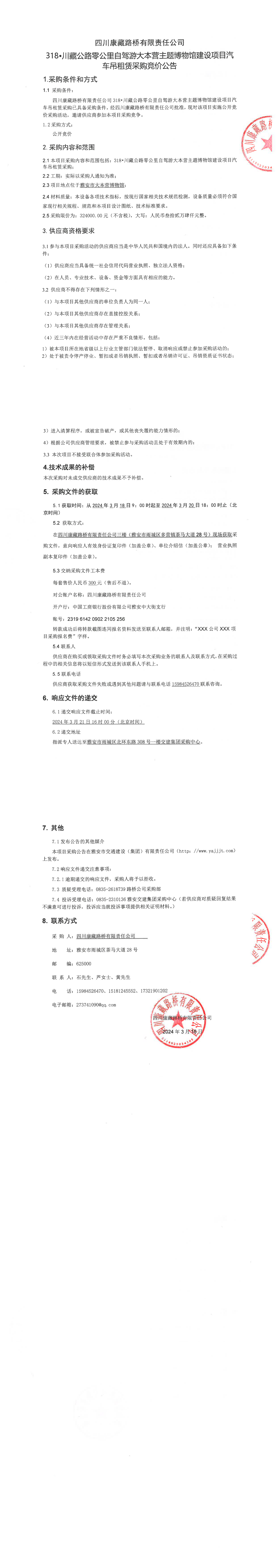 四川康藏路桥有限责任公司318•川藏公路零公里自驾游大本营主题博物馆建设项目汽车吊租赁采购竞价公告