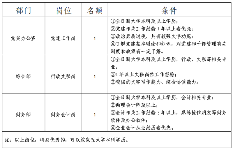 一、 招聘岗位、名额、条件