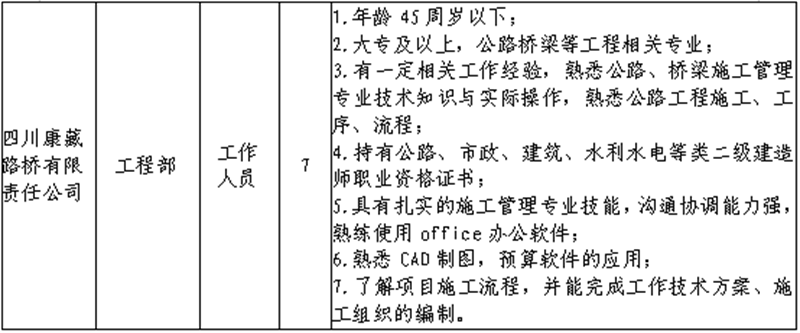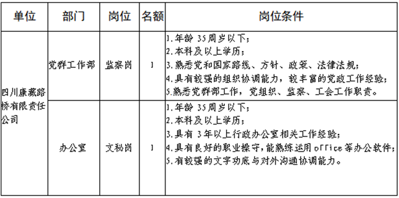 根据开展需要,决定面向社会公开招聘雅安市交通建设(集团)有限责任公司(以下简称“币游集团”)所属子公司工作人员16名,现将有关事项公告如下: