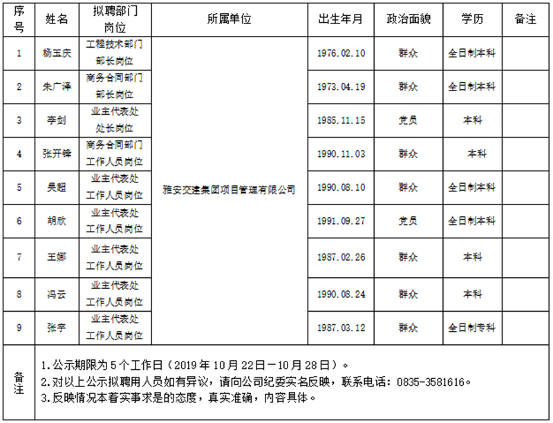 币游集团项目管理有限公司拟聘用人员公示(项目管理公司)