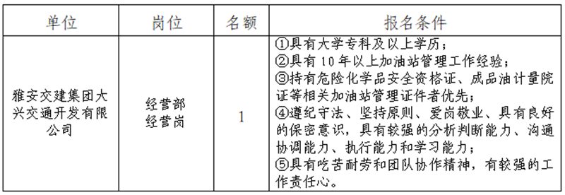 根据开展需要,决定面向社会公开招聘雅安市交通建设(集团)有限责任公司(以下简称“币游集团”)所属子公司工作人员1名,现将有关事项公告如下: