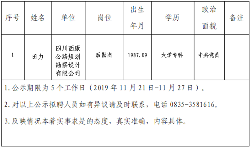 根据集团公司《人才选聘实施办法》,经研究,对以下拟聘用人员予以公示: