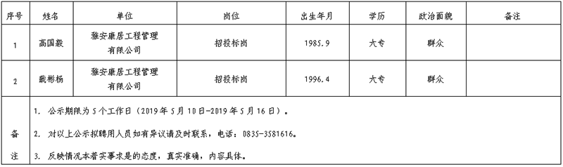 根据集团公司《人才选聘实施办法》,经研究,对以下拟聘用人员予以公示: