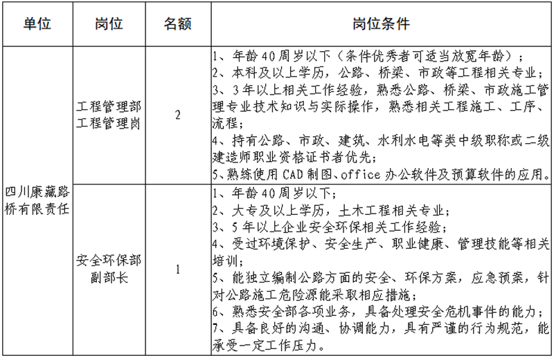 根据开展需要,决定面向社会公开招聘雅安市交通建设(集团)有限责任公司(以下简称“币游集团”)所属子公司相关人员3名,现将有关事项公告如下: