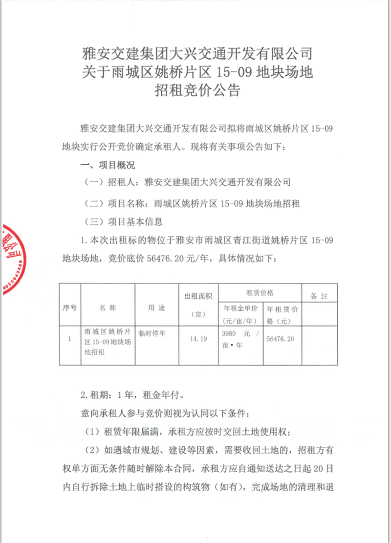 大兴公司 姚桥15-09地块租赁 招租公告附件