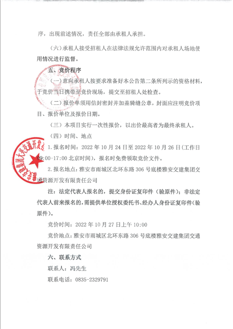 币游集团无水港物流有限责任公司关于雅安市凤鸣综合物流园资产公开招租的公告