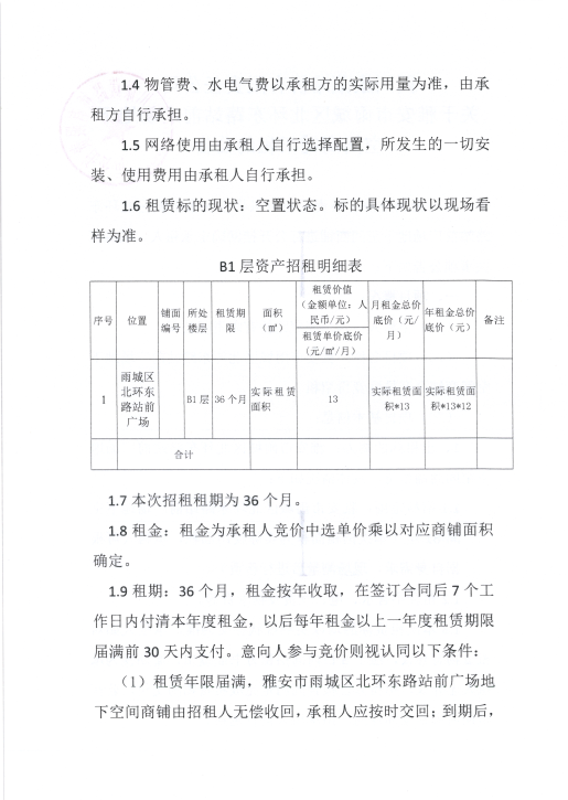 四川康藏路桥有限责任公司关于雅安市雨城区北环东路站前广场地下空间商铺招租的公告